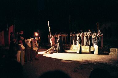 Lene/Maria Magdalena (Stefanie Seese) beim Weltgerichtsspiel.